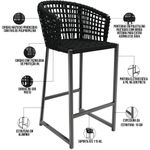 Kit 03 Banqueta Para Área Gourmet Cozinha Varanda Corda Náutica Porto D04 Preto - Lyam Decor