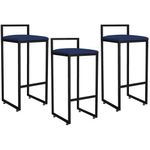 O seu sonho é ter uma cozinha integrada? Uma banqueta pode ser fator determinante para ajudar nesta tarefa, principalmente se você contar com o modelo Kit 03 Banquetas Altas Para Cozinha Sala de Jantar Hanna Preto Suede Azul Marinho - Lyam Decor. Ideal para quem deseja montar uma cozinha americana ou agregar valor à sua área gourmet, o modelo possui design slim que é super apropriado para apartamentos ou para quem tem uma cozinha compacta. Outro ponto positivo é que este modelo não possui braços, sendo assim ocupa menos espaço e torna melhor para circulação. Ah, também possui apoio para os pés, elemento fundamental para a ergonomia e conforto. As opções de uso são infinitas, seja para um living, recepção, hall de entrada, sala de jantar, área gourmet ou ambiente corporativo. Para ter um espaço vital procure a distância mínima de 50 cm entre as banquetas. Desta forma a organização ficará harmônica e muito confortável para utilização. Dimensões do produto (A x L x P) 81 x 35 x 36 cm Altura do assento ao chão: 66 cm Características: Estrutura de Ferro com espessura de 20mm. Acabamento em pintura eletrostática cor Preto. Estrutura do assento em Madeira de Eucalipto. Assento fixo com espuma certificada D-23. Revestimento em Suede. Sapatas Niveladoras. Peso suportado: Até 150 kg. - Por se tratar de estofado as medidas podem ter uma pequena variação de até 3 cm. - A tonalidade do produto real poderá ter ligeira variação devido o lote de tecidos. Observações importantes: - Produto para uso residencial em ambiente interno, não devendo ficar exposto diretamente ao sol, calor e umidade excessivos. - Pode haver alguma diferença de tonalidade entre a imagem e o produto real, por conta do tratamento de imagens e a calibração de cores do seu monitor. - As imagens são meramente ilustrativas, não acompanham objetos de decoração e eletrônicos. - Ao receber a mercadoria, o cliente deve verificar as condições da embalagem, caso haja alguma avaria não assine o comprovante de recebimento. - Montagem, desmontagem e outras instalações serão de responsabilidade do cliente. Não nos responsabilizamos, no ato da entrega, por subir escadas/elevadores ou pelo transporte por guincho em apartamentos. Eventuais despesas são de responsabilidade do comprador. - Confira as dimensões do produto e certifique-se de que passará normalmente por supostos elevadores, portas, escadas e/ou corredores de sua residência.