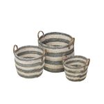 Kit 03 Cestos Karon - Verde Branco KIT DE 3 CESTOS KARON, conta com 3 cestos de tamanhos decrescentes de fibra natural. Podendo ser utilizados como peça de decoração e organização, seu espaço certamente ganhara mais charme com os cestos Karon, composto por fibras naturais com estilo rustico intercalando as cores natural e verde seu ambiente se beneficiará de um toque de delicadeza que vem da natureza.Produto: Kit 3 Cestos Boxbit Karon em Fibra Natural e Verde - Medida do cesto P: 24x24x24;