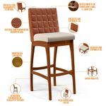 Entregando muita excelência, o Kit 04 Banquetas Altas Cozinha Sala De Jantar Fixa Mila B04 Couríssimo Camel Linho Cru - Lyam Decor é o complemento que faltava para deixar sua casa ainda mais extraordinária. Seu encosto com costura em padrão quadriculado e assento estofados, centralizam em si uma graciosidade estonteante, sem perder todo o conforto. A estrutura em madeira, na cor nozes, também é digna de notoriedade, por imprimir bastante personalidade a sua decoração. Vale ressaltar ainda, o apoio para os pés que garante maior segurança à banqueta.