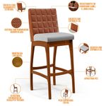 Entregando muita excelência, o Kit 04 Banquetas Altas Cozinha Sala Jantar Fixa Mila B04 Couríssimo Camel Linho Cinza - Lyam Decor é o complemento que faltava para deixar sua casa ainda mais extraordinária. Seu encosto com costura em padrão quadriculado e assento estofados, centralizam em si uma graciosidade estonteante, sem perder todo o conforto. A estrutura em madeira, na cor nozes, também é digna de notoriedade, por imprimir bastante personalidade a sua decoração. Vale ressaltar ainda, o apoio para os pés que garante maior segurança à banqueta.