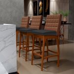Entregando muita excelência, o Kit 06 Banquetas Altas Cozinha Sala Jantar Fixa Mila B04 Couríssimo Marrom Corano Preto - Lyam Decor é o complemento que faltava para deixar sua casa ainda mais extraordinária. Seu encosto com costura em padrão quadriculado e assento estofados, centralizam em si uma graciosidade estonteante, sem perder todo o conforto. A estrutura em madeira, na cor nozes, também é digna de notoriedade, por imprimir bastante personalidade a sua decoração. Vale ressaltar ainda, o apoio para os pés que garante maior segurança à banqueta.