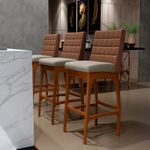 Entregando muita excelência, o Kit 06 Banquetas Altas Cozinha Sala Jantar Fixa Mila B04 Couríssimo Marrom Linho Bege - Lyam Decor é o complemento que faltava para deixar sua casa ainda mais extraordinária. Seu encosto com costura em padrão quadriculado e assento estofados, centralizam em si uma graciosidade estonteante, sem perder todo o conforto. A estrutura em madeira, na cor nozes, também é digna de notoriedade, por imprimir bastante personalidade a sua decoração. Vale ressaltar ainda, o apoio para os pés que garante maior segurança à banqueta.