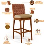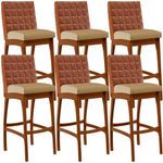 Entregando muita excelência, o Kit 06 Banquetas Altas Sala De Jantar Fixa Mila B04 Couríssimo Camel Linho Bege Escuro - Lyam Decor é o complemento que faltava para deixar sua casa ainda mais extraordinária. Seu encosto com costura em padrão quadriculado e assento estofados, centralizam em si uma graciosidade estonteante, sem perder todo o conforto. A estrutura em madeira, na cor nozes, também é digna de notoriedade, por imprimir bastante personalidade a sua decoração. Vale ressaltar ainda, o apoio para os pés que garante maior segurança à banqueta.