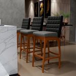 Entregando muita excelência, o Kit 06 Banquetas Altas Sala De Jantar Fixa Mila B04 Couríssimo Preto Linho Cinza Escuro - Lyam Decor é o complemento que faltava para deixar sua casa ainda mais extraordinária. Seu encosto com costura em padrão quadriculado e assento estofados, centralizam em si uma graciosidade estonteante, sem perder todo o conforto. A estrutura em madeira, na cor nozes, também é digna de notoriedade, por imprimir bastante personalidade a sua decoração. Vale ressaltar ainda, o apoio para os pés que garante maior segurança à banqueta.