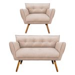 Kit 01 Namoradeira E 01 Poltrona Anitta Suede Pés Palito Castanho D´rossi -bege