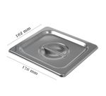 Descrição Tampa Cuba Gastronômica Inox GN 1/6 - Brasinox Tampa Em INOX 1/6 Tradicional Para Cubas Gastronômica Inox 1/2 Original. A Tampa para Cuba GN 1/2 é desenvolvida em aço inoxidável resistente, higiênica e com cantos arredondados que facilitam a limpeza. Possui puxador e é ideal para a utilização conjunta as cubas em buffets e rechauds de cozinhas, restaurantes e refeitórios em geral. Características Características Gerais - Sem recortes Caracteristicas do Produto -Medida: Comprimento: 16,2 cm Largura: 17,6 cm