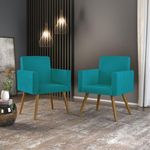 Kit 2 Cadeiras Escritório Poltrona Decorativa Cor:azul Turquesa A poltrona Nina traz muita segurança e conforto para seu ambiente. Sua estrutura é 100% em madeira Eucalipto e todo conforto se deve a espuma com densidade D-23. Com um design sofisticado, a poltrona Nina conta com acabamento em Suede. Após a sua compra, produto passará por PROCESSO DE FABRICAÇÃO. Qual o material utilizado? - Tecidos Suede; - Espuma D-23; - Percintas elásticas; - Estrutura 100% madeira; - Pés madeira de eucalipto. Para quem indicamos? - Para os amantes da LEITURA - Para trazer conforto na hora da AMAMENTAÇÃO; - Para trazer sofisticação para SALA DE ESTAR - Para trazer aconchego em seu QUARTO - Para proporcionar comodidade ao seu ESCRITÓRIO ou HOME OFFICE Garantia de fábrica de 03 meses contra defeito de fabricação Modo de limpeza - Limpar com pano limpo e moderadamente úmido Observações importantes: -Todos os produtos vão embalados com total segurança. - Não nos responsabilizamos por montagens, subidas em escadas ou similares no ato da entrega. - Pode haver alguma diferença de tonalidade entre a imagem e o produto, por conta do tratamento de imagens e a calibração de cores da sua tela. Dimensões Altura: 87 cm Largura: 61 cm Profundidade: 60 cm Peso: 9,5 kg Tecido Suede 100% poliéster. Informações de Envio. - O prazo de envio do produto é de 5 dias úteis posterior aprovação da sua compra. - Produto montado, sendo necessário apenas rosquear os pés. - Nossos produtos são embalados com até 02 Poltronas Nina por volume. Ficamos a Disposição para qualquer dúvida.