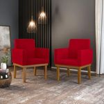 Kit 2 Cadeiras Escritório Reforçadas - Balaqui Cor:vermelhoA poltrona Nina traz muita segurança e conforto para seu ambiente. Sua estrutura é 100% em madeira Eucalipto e todo conforto se deve a espuma com densidade D-23. Com um design sofisticado, a poltrona Nina conta com acabamento em Suede. PARA QUEM INDICAMOS NOSSAS POLTRONAS ? - Para os amantes da LEITURA; - Para trazer sofisticação para SALA DE ESTAR; - Para trazer aconchego em seu QUARTO; - Para proporcionar comodidade ao seu ESCRITÓRIO ou HOME OFFICE. E claro... Para presentear quem mais amamos! QUAL O MATERIAL UTILIZADO ? - Tecidos suede; - Espuma D-23; - Percintas elásticas; - Estrutura 100% madeira Eucalipto; - Pés madeira de eucalipto. Produto suporta até 120 kg. Garantia de fábrica de 03 meses contra defeito de fabricação. Você receberá:Duas poltronas NINA com base reforçada Instruções de montagem: Produto montado, sendo necessário apenas rosquear os pés. Observações importantes: -Todos os produtos vão embalados com total segurança. - Não nos responsabilizamos por montagens, subidas em escadas ou similares no ato da entrega. - Pode haver alguma diferença de tonalidade entre a imagem e o produto, por conta do tratamento de imagens e a calibração de cores da sua tela. Modo de limpeza: - Limpar com pano limpo e moderadamente úmido ESPECIFICAÇÕES TÉCNICAS Travamento da estrutura com grampos em aço galvanizados e parafusos com flange de 5 mm; Acento sustentado por percintas elásticas; Madeira de reflorestamento eucalipto; Tecido suede 100% poliéster. Dimensões Altura: 87 cm Largura: 61 cm Profundidade: 60 cm Peso: 10,5 kg