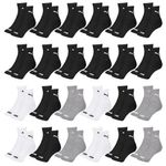 Com o Kit 24 Pares de Meia Puma Cano Médio Esportiva, você garante o conforto durante os treinos e práticas de atividades físicas. Desenvolvida com a leveza do algodão e elasticidade da poliamida, as peças possuem toque macio, reforço no calcanhar e na ponta, oferecendo alta durabilidade e melhor ventilação. Traz logo da marca em contraste no tornozelo, e elástico central para ajuste perfeito aos pés. Medidas aproximadas cm: 23x11 (Comprimento do Pé x Largura).