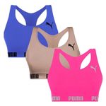 O Kit 3 Tops Puma Nadador Sem Costura, é ideal para usar por baixo de regatas para treinos e dia a dia. Confeccionados em poliamida, poliéster e elastano, estes tops trazem toque suave a pele e maior conforto por não possuírem bojo e nem costuras. Contam com alças grossas, decote em U, e costas com modelagem nadador. O kit é composto por duas unidades em cores distintas, proporcionando sempre o melhor visual e a melhor performance para suas atividades físicas. Medidas aproximadas (cm): P-30x12/M-32x14/G-34x16/EG-36x18 (largura x comprimento do busto).