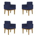 Kit 4 Cadeiras Reforçada Escritório Poltrona Cor:azul Marinho A poltrona Nina traz muita e conforto para seu ambiente. Sua estrutura é 100% em madeira Eucalipto e todo conforto se deve a espuma com densidade D-23. Com um design sofisticado, a poltrona Nina conta com acabamento em Suede. PARA QUEM INDICAMOS NOSSAS POLTRONAS ? - Para os amantes da LEITURA; - Para trazer sofisticação para SALA DE ESTAR; - Para trazer aconchego em seu QUARTO; - Para proporcionar comodidade ao seu ESCRITÓRIO ou HOME OFFICE. E claro... Para presentear quem mais amamos! QUAL O MATERIAL UTILIZADO ? - Tecidos suede; - Espuma D-23; - Percintas elásticas; - Estrutura 100% madeira Eucalipto; - Pés madeira de eucalipto. Produto suporta até 120 kg. Garantia de fábrica de 03 meses contra de fabricação. Você receberá: Quatro poltronas NINA com base reforçada Instruções de montagem: Produto montado, sendo necessário apenas rosquear os pés. Observações importantes: -Todos os produtos vão embalados com total . - Não nos responsabilizamos por montagens, subidas em escadas ou similares no ato da . - Pode haver alguma diferença de tonalidade entre a imagem e o produto, por conta do tratamento de imagens e a calibração de cores da sua tela. Modo de limpeza: - Limpar com pano limpo e moderadamente úmido ESPECIFICAÇÕES TÉCNICAS Travamento da estrutura com grampos em aço galvanizados e parafs com flange de 5 mm; Acento sustentado por percintas elásticas; Madeira de reflorestamento eucalipto; Tecido suede 100% poliéster. Dimensões Altura: 87 cm Largura: 61 cm Profundidade: 60 cm Peso: 10,5 kg