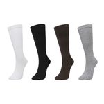 O Kit 4 Pares de Meias Selene 3/4 Básica Feminino garante mais variedade e conforto aos seus pés. Possui tecido composto em algodão, além de oferecer toque gelado e elasticidade graças à poliamida e ao elastano. O design é em 3/4, assim a altura do cano vai até abaixo do joelho. A barra canelada se ajusta perfeitamente ao corpo. Kit nas cores branco, preto, marrom e cinza.