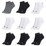 Com o Kit 9 Pares De Meias Puma Logo, você garante conforto durante os treinos e práticas de atividades físicas. Desenvolvida com a leveza do algodão e elasticidade da poliamida, as peças possuem toque macio, reforço no calcanhar e na ponta, oferecendo alta durabilidade e melhor ventilação. Traz logo da marca em contraste, e elástico central para ajuste perfeito aos pés. Medidas aproximadas (cm): 39/43- 22x09 (Comprimento do Pé x Largura).
