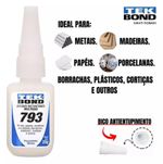 O Adesivo Instantâneo 793 da Tekbond é um adesivo de cianoacrilato monocomponente, conhecido por sua colagem rápida e forte em uma variedade de materiais. Aqui estão os detalhes sobre este produto:Características Principais:Colagem Instantânea: Cola em segundos, ideal para reparos rápidos e montagens.Multiuso: Adequado para diversos materiais, incluindo:MetaisPapéisMadeirasPorcelanasBorrachasPlásticosCortiçasTransparente: A cola seca de forma transparente, proporcionando um acabamento limpo.Viscosidade Média: Oferece um equilíbrio entre tempo de cura e facilidade de aplicação.Embalagem: 20g, com bico anti-entupimento.Aplicações:Reparos domésticos em geral.Artesanato e modelismo.Colagem de componentes eletrônicos.Reparos em brinquedos e objetos de decoração.Instruções de Uso:Preparação: As superfícies devem estar limpas, secas e livres de óleo ou graxa.Aplicação: Aplique uma pequena quantidade de adesivo em apenas uma das superfícies a serem coladas. O excesso de adesivo pode prejudicar a colagem.Colagem: Pressione as superfícies juntas por alguns segundos, até que a colagem esteja firme.Cura: A cura total ocorre em 24 horas.Precauções:Mantenha fora do alcance de crianças.Evite contato com a pele e os olhos. Em caso de contato, lave com água em abundância.Use em local ventilado.Não guardar na geladeira.Informações adicionais:O bico anti-entupimento ajuda a prolongar a vida útil do produto.É um produto monocomponente que não necessita de mistura.O Adesivo Instantâneo 793 da Tekbond é uma solução prática e eficiente para colagens rápidas e seguras.
