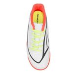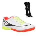 Agora os pequenos poderão praticar seu esporte favorito aumentando sua performance com mais conforto e qualidade usando a chuteira Futsal Penalty Storm XXI. O cabedal desenvolvido em material sintético oferece mais resistência ao produto. Conta com fechamento em cadarço, lingueta flexível e forro têxtil acolchoado que entrega bem-estar durante o uso. O modelo fornece a tecnologia HiperFlex, que são canaletas posicionadas estrategicamente que auxiliam na flexão e movimento dos pés e o sistema Non-Marking, uma borracha que não marca as quadras e proporciona excelente tração. O solado em borracha que garante mais aderência, traz pontos de giro que facilita a movimentação nos dribles. O design vem em cor branca, com detalhes em laranja e amarelo. Já o meião, é confeccionado em materiais resistentes e traz a tecnologia Flot que proporciona maior ventilação, aumentando a respirabilidade. Seu tecido é um isolante térmico e conta com faixa tensora nos tornozelos para mais proteção. Referência: 126221.1902.