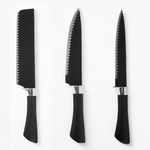 Eleve a sua experiência na cozinha com este elegante conjunto de facas de corte, composto por seis peças de alta performance. Com lâminas super afiadas e revestimento antiaderente, as facas possuem um design moderno e sofisticado na cor preta, tornando-as não apenas funcionais, mas também um item de destaque em sua cozinha.O cabo ergonômico proporciona um manuseio e confortável, garantindo maior precisão nos cortes, especialmente ao preparar carnes. Feitas de aço inoxidável de alta durabilidade e qualidade, essas facas oferecem cortes equilibrados e precisos, ideais tanto para o uso diário quanto para aquele churrasco de final de semana.Cada faca deste conjunto é projetada para funções específicas, tornando seu preparo culinário mais eficiente e prático, seja para fatiar, aparar ou realizar cortes mais delicados.Especificações do Produto:Cabo ergonômico em plástico resistente, na cor preta.Lâminas de aço carbono com revestimento antiaderente, para cortes suaves e precisos.Alta durabilidade, resistência à corrosão e fácil de limpar.Recomendações de Uso:Mantenha as lâminas sempre afiadas e secas para preservar sua qualidade.Pode ser utilizada em máquina de lavar louça, garantindo maior praticidade no dia a dia.Produto cortante e perfurante: mantenha fora do alcance de crianças.Cuidados com o Produto:Lave com detergente neutro e enxágue abundantemente.Seque com um pano macio para evitar manchas.Evite o uso de produtos abrasivos para preservar o acabamento das lâminas.Itens Inclusos:- 1x Faca de Cozinha;- 1x Faca para Fatiar;- 1x Faca de Chef;- 1x Faca de Aparar;- 1x Faca Universal;- 1x Descascador de Legumes;- 1x Tesoura Multiuso.ATENÇÃO: Mantenha este produto longe do alcance de crianças, evite riscos de acidentes.