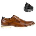 Você está em busca de um sapato que una elegância, durabilidade e máximo conforto? Apresentamos o Sapato Ferracini Cincy Firenze Masculino! Este calçado é ideal para homens que valorizam estilo e qualidade em cada passo. Confeccionado com couro de alta qualidade Este sapato possui um visual impecável. Seu acabamento refinado e costuras precisas adicionam um toque de sofisticação a cada look. Não apenas estilo, mas também um conforto excepcional. Com uma palmilha de espuma macia, este sapato proporciona amortecimento adicional para seus pés, garantindo conforto ao longo do dia. Sinta a diferença em cada passo sem abrir mão do estilo. Seu solado em borracha termoplástica oferece excelente aderência em qualquer superfície. Seja para compromissos urbanos ou aventuras ao ar livre, você pode contar com a durabilidade e estabilidade deste sapato. Com um sistema de amarração em cadarço, você pode ajustar o sapato de acordo com sua preferência, proporcionando um ajuste personalizado e seguro. Assim, você terá o máximo conforto e a certeza de que o sapato ficará firme em seus pés. O Sapato Ferracini Cincy Firenze Masculino combina perfeitamente com diferentes looks, desde trajes formais até casuais. Seja para o escritório, eventos sociais ou ocasiões especiais, você estará sempre elegante e sofisticado. Já o cinto dupla face, foi produzido em material sintético e fivela de pino em metal. Possui tamanho único, que pode ser ajustado no tamanho desejado, para isso, retire a fivela, corte-o do tamanho desejado e coloque a fivela novamente. Com um detalhe especial, este cinto possui dupla face, fazendo com que você use um lado preto e outro marrom, apenas retirando a fivela, simples e fácil. Referência do sapato: 3401- 672L.