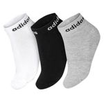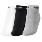 - Detalhamento: Embalagem com 03 pares de meias nas cores branca, cinza e preta, cano curto (aproximadamente 2cm), escrita Adidas nas laterais em cor contrastante, veste do 35 ao 37, tecido leve e macio;