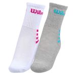 - Detalhamento: Pacote com 2 pares de meia, que oferece durabilidade, maciez e conforto, escrita Wilson na lateral do cano, quatro faixas coloridas próximo ao calcanhar, calça do tamanho 34 ao 38;