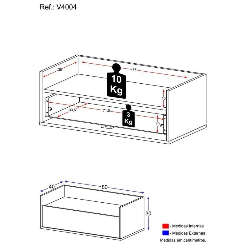 Altura: 30cm | Largura: 80cm | Profundidade: 40cm