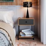 Mesa De Cabeceira Estilo Industrial 01 Gaveta P1026, design em alta e espaço para que os itens que você necessita ao lado de sua cama estejam sempre à mão. Possui estrutura em aço e MDP de 15 mm, gaveta com puxador embutido e corrediças metálicas, dispõe também de prateleira inferior para seus livros e demais objetos, sua base possui proteção em plástico, evitando riscos no chão de seu cômodo. Com suas texturas exclusivas, ela irá agregar aconchego e praticidade à seu quarto. Este móvel chegará na sua casa separado em 01 volume.