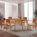 Mesa De Jantar Copper 180cm Tampo Mdf 6 Cadeiras Moderna Veludo Creme/naturalle/naturalle