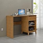 Mesa Escrivaninha que une beleza e funcionalidade, com estrutura em MDF de 15mm, seus pés e frentes de gaveta são confeccionados em madeira maciça, garantindo resistência e durabilidade. O acabamento conta com pintura acetinada em verniz PU e UV, proporcionando um toque suave e proteção extra. O design funcional possui 01 gaveta com puxadores cava e corrediças telescópicas, que proporcionam abertura suave e silenciosa, além de 02 nichos abertos, ideais para acomodar livros, revistas ou objetos decorativos. Este móvel chegará em sua casa separado em 01 volume.