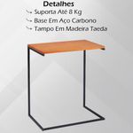 Mesa Lateral De Apoio Base Aço Preto I20 Mell Madeira Taeda Dmobiliario Mell