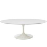 Mesa Saarinen Oval 137x90 cm Laqueada Yescasa BrancoMesa de jantar Saarinen Oval, Tampo 137x90 cm Tampo Laminado em Madeira, com contra tampo em MDF, Base em alumínio fundido com pintura automotiva PU. A famosa mesa Tulipa é conhecida nacional e internacionalmente devido ao nome do criador, o grande e renomado arquiteto Eero Saarinen, desenhada em 1956, a sua Base lembra o caule da flor Tulipa. O design orgânico desse Mesa faz dela umas das peças mais cobiçadas desde sua criação em 1956, fácil de combinar ela fica bem em qualquer ambiente, na cozinha, na sala, e até como mesa lateral no quarto, a peça inspira versatilidade. Dimensões: - Altura: 75 cm