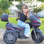 A Moto Sprint Turbo 12V tem um design robusto e arrojado, rodas largas com faixa antiderrapante, painel eletronico com farol, setas e diidos sons. Botao frente, re e neutro, acelerador de pedal com trava de seguranca removivel e suporte para os pes antiderrapante. Alem disso, possui um bagageiro que acompanha capacete gratis.