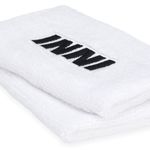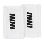 - Detalhamento: Pacote com 02 munhequeiras longas na cor branca, ambas com a escrita INNI bordada em preto, formato anatômico ao pulso, tecido atoalhado confortável e sem costuras;