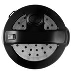 - Tampa vedada com alça, botão de travamento e saída de vapor