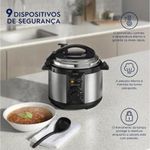 A Panela de Pressão Elétrica 3 Litros Electrolux por Rita Lobo (PCE15) oferece segurança para você e sua família, além de versatilidade para preparar diferentes receitas, do feijão a carnes deliciosas. Com design sofisticado e capacidade para vários pratos, ela ainda se destaca por recursos que tornam o cozimento e a limpeza mais fáceis, promovendo eficiência e comodidade ao seu dia a dia. Panela de pressão silenciosa:sua cozinha com menos ruído; Função Feijão:receita pré-programada do prato mais popular entre os brasileiros; Cesto interno antiaderente e removível:permite uma limpeza fácil e sem esforço; - Alças antitérmicas: não aquecem durante o cozimento e promovem mais segurança para você e sua família; Cabo elétrico removível: para transportar a panela até a mesa quando quiser, com facilidade; Acompanha copo medidor de 160 ml e concha plástica que não risca a panela; Design sofisticado em aço inox escovado, moderno, durável e fácil de limpar. O modelo da Electrolux é equipado com tecnologias que facilitam o preparo dos alimentos. Um exemplo é o timer de até 60 minutos, que permite selecionar o tempo de cozimento perfeito para a sua receita, com desligamento automático após o preparo. Aliás, logo após o desligamento, a panela aciona a Função Manter Aquecido, que mantém o prato na temperatura ideal até a hora de servir. Capacidade em litros 3L Tensão elétrica (V) 127V ou 220V Potência 700W Timer Sim Acessórios inclusos Copo Medidor e Concha Cor Preto Função manter aquecido SimMaterial do corpo Aço Inox Programável Não Recipiente interno antiaderente removível Sim Cabo elétrico removível Sim Coletor de vapor Sim Desligamento automático Sim Dispositivos de segurança 9 Tipo de painel Frequência 60Hz Altura do produto 26,5 cm Largura do produto 32,3 cm Profundidade do produto 31 cm Peso do produto 3,52kg tipo de panela: elétrica de pressão Cor: PRETO Voltagem: 110 V