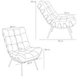 A estrutura em Aço Carbono com pintura Epóxi na cor Preto finaliza sua composição com chave de ouro, com imensa durabilidade, seu formato fino garante a leveza ideal nos relembrando a sofisticada nostalgia do charme que tiveram os anos 1950. Dimensões da Poltrona (L x A x P) 68 x 90 x 90 cm Medidas Internas: