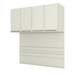 A ponte casal modulada tem 04 portas e duas prateleiras, une design e funcionalidade. A linha foi desenvolvida para possibilitar várias opções de montagens e atender diversas necessidades de espaço, oferecendo mais praticidade no seu dia a dia, é compacto e bem planejado, perfeito para a organização, deixando o ambiente ainda mais aconchegante e sofisticado. Tem 2405mm de altura, 1585mm de largura e 540mm de profundidade.