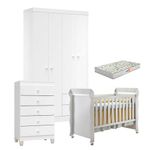 Quarto de Bebê 4 Portas com Gaveteiro Ternura Baby e Berço Mirelle Branco Brilho com Colchão Gazin - Incorplac
