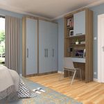 Quarto Home Office Com Guarda Roupas E Bancada De Estudos Paris Luciane Móveis Avelã Pf Com Grey Sky Pf