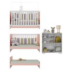 Bebê e MaternidadeQuarto e EnxovalMóveisQuarto Infantil Com Berço Colchão Incluso E Cômoda Algodão Doce Multimóveis Mp4250 Branco/rosa