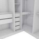 Para quem sempre sonhou com um quarto planejado, o Modulado Adapt da Kappesberg é a escolha certa. Produzido em MDP de 15mm, o que proporciona mais robustez, firmeza e qualidade, o Combo CB1347 é a escolha ideal para transformar seu quarto, otimizando espaço e garantindo beleza e funcionalidade. Com três peças, incluindo o canto oblíquo, e uma altura de 2,30m de altura, ele conta com amplo espaço e uma ótima divisão interna para organizar todos os seus itens. Nos nichos de tamanhos diferentes você poderá guardar calçados e roupas dobradas. Os cabideiros, metálicos e de suporte interno, permitem organizar peças maiores, como casacos e vestidos sem amassar. Já as gavetas, com corrediças telescópicas, garantem uma melhor otimização de espaço e são perfeitas para acessórios e peças menores, deixando seu quarto sempre organizado. Com até sete camadas de pintura, é a opção perfeita para quem ama ambientes clássicos e elegantes. O diferencial fica para o sistema de amortecimento nas portas, proporcionando um fechamento suave e sem ruídos, e os puxadores em MDF na cor dourada completam os diferenciais do produto, deixando você com o quarto que sempre sonhou. Renove seu quarto com toda a qualidade e beleza que o Modulado Adapt da Kappesberg oferece e aproveite cada momento. Acabamento: Pintura Brilho | Cabideiro: Metálicos | Cor: Branco | Corrediças: Telescópicas | Dobradiça: Com Amortecimento / Sem Amortecimento | Garantia: 3 meses para defeito de fabricação | Gavetas: Internas | Matéria-prima: MDP | Peso suportado por cabideiro: 10 Kg | Peso suportado por cada prateleira: 7 kg | Peso suportado por gaveta: 6 kg | Puxadores: MDF Revestido | Quantidade de calceiros: 2 | Quantidade de gavetas: 2 / 4 | Quantidade de portas: 2 / 4 / 6 | Quantidade de prateleiras: 5 / 6 / 8 | Sistema de montagem: Parafuso Philips / Parafuso Philips e Minifix | Tipo de porta: Bater | Quantidade de caixas da embalagem: 18 | Requer montagem: Sim | É kit de fábrica: Sim | Tipo de garantia: Garantia do fabricante | Duração da garantia: 3 meses