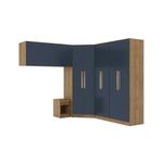 Quarto Modular Kappesberg Adapt Nogueira/azul Profundo 6 Peças 260cm X 256cmPara quem sempre sonhou com um quarto planejado, o Modulado Adapt da Kappesberg é a escolha certa. Produzido em MDP de 15mm, o que proporciona mais robustez, firmeza e qualidade, o Combo seis peças CB1165 é ideal para quartos de solteiro, oferecendo funcionalidade. Modulado, você pode dispor os módulos conforme o seu espaço e preferência. Com 2,30m de altura, o combo conta com um roupeiro de canto oblícuo, que junto com os demais módulos, otimiza espaço, permitindo composições em “L”, garantindo organização e beleza. Com ótimas divisões internas, os módulos possuem nichos de tamanhos diferentes, ideais para guardar calçados e roupas dobradas. Os cabideiros, metálicos e de suporte interno, permitem organizar peças maiores, como casacos e vestidos sem amassar. Já as gavetas, com corrediças telescópicas, garantem uma melhor otimização de espaço e são perfeitas para acessórios e peças menores, deixando seu quarto sempre organizado. Com aéreo e maior espaço na vertical, você organiza cobertas e travesseiros com facilidade. E para deixar seu quarto com cara de planejado, o combo acompanha uma cabeceira estofada, ideal para camas de casal tradicional, de 138cm, deixando seus momentos de descanso ainda mais confortáveis, e a mesa de cabeceira garante que você tenha um verdadeiro quarto modulado. Com sete camadas de pintura, tanto na parte interna quanto na externa, a caixaria conta com pintura touch na cor nogueira, com a textura dos veios da madeira, e as portas, com pintura na cor azul profundo, possuem acabamento fosco. Uma combinação marcante e moderna, que garantirá estilo e aconchego ao espaço, ideal para quem busca por um design único e elegante. O diferencial fica por conta do sistema de amortecimento nas portas, garantindo um fechamento suave e sem ruídos, além de mais durabilidade, e os puxadores, em MDF na cor dourada e em alumínio, completam a beleza do produto, deixando seu quarto do jeito que você sempre sonhou. Renove seu quarto com toda a qualidade e beleza que o Modulado Adapt da Kappesberg oferece e aproveite cada momento.Informações importantes:As imagens são meramente ilustrativas, não acompanha acessórios;Pode haver variação de cor de acordo com a calibragem da tela onde o produto está sendo visualizado;Todos nossos móveis são entregues desmontados;A montagem é sempre por conta do cliente (orientamos a contratação de um profissional qualificado, o manual de montagem acompanha o produto);O vídeo do produto pode ser genérico, então atente-se às imagens do anúncio para optar pela cor/modelo.Compõe o conjunto 6 peças:1x Guarda-Roupa 2 Portas Kappesberg Adapt Nogueira/Azul profundo 71cm;1x Guarda-Roupa 2 Portas 2 Gavetas Kappesberg Adapt Nogueira/Azul Profundo 80cm;1x Guarda-Roupa de Canto 2 Portas Kappesberg Adapt Nogueira/Azul Profundo 105cm;1x Mesa de Cabeceira 1 Gaveta Kappesberg Adapt Nogueira;1x Armário Aéreo 4 Portas Kappesberg Adapt Nogueira/Azul Profundo 155cm;1x Cabeceira Estofada Kappersberg Adapt Veludo Bege 140cm.*Obs.: Não acompanha cama, colchão, acessórios, decorações e periféricos;Largura A: 260cm / B: 256cm.Acabamento: Pintura Fosco / Pintura Touch | Acabamento da Fita Borda: Papel | Cabideiro: Metálicos | Cor: Nogueira/Azul Profundo | Corrediças: Telescópicas | Dobradiça: Com Amortecimento / Sem Amortecimento | Garantia: 3 meses para defeito de fabricação | Gavetas: Internas | Matéria-prima: MDP / MDP (Cabeceira Estofada) | Para colchões de largura: 88cm | Peso suportado por cabideiro: 10 Kg | Peso suportado por cada prateleira: 7 kg | Peso suportado por gaveta: 6 kg | Puxadores: MDF Revestido | Quantidade de calceiros: 1 / 2 | Quantidade de gavetas: 1 / 2 | Quantidade de portas: 2 / 4 | Quantidade de prateleiras: 4 / 5 | Sistema de montagem: Parafuso Philips / Parafuso Philips e Minifix | Tipo de porta: Bater