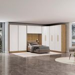 Quarto Modular Kappesberg Adapt Nogueira/branco 5 Peças 418cm X 263cmPara quem sempre sonhou com um quarto planejado, o Modulado Adapt da Kappesberg é a escolha certa. Produzido em MDP de 15mm, o que proporciona mais robustez, firmeza e qualidade, o Combo CB1154 conta com cinco peças, sendo a composição perfeita para ambientes amplos, garantindo o espaço ideal para organizar roupas e calçados com beleza e funcionalidade. Unindo peças curingas e muito versáteis, os módulos são individuais, permitindo a montagem conforme o seu espaço e preferência. Com altura de 2,30m e 56cm de profundidade, os módulos contam com amplo espaço e uma ótima divisão interna, com nichos de tamanhos diferentes, ideais para guardar calçados e roupas dobradas. Os cabideiros, metálicos e de suporte interno, permitem organizar peças maiores, como casacos e vestidos sem amassar. Já as gavetas, com corrediças telescópicas, garantem uma melhor otimização de espaço e são perfeitas para acessórios e peças menores, deixando seu quarto sempre organizado. E para um melhor aproveitamento de espaço na ical, o aéreo é uma ótima opção, permitindo organizar travesseiros e cobertores com facilidade. Com formato em “L”, o módulo de canto é uma das peças centrais do ambiente, e para deixá-lo com cara de planejado, o combo conta com painel para cabeceira, acomodando camas de casal tradicional, de 138cm, tornando seu quarto mais completo. E com sete camadas de pintura, tanto na parte interna quanto na externa, a caixaria conta com pintura touch na cor nogueira, com a textura dos veios da madeira, enquanto que as portas são na cor branco brilho. Uma combinação linda e moderna, que garantirá luminosidade e aconchego ao espaço, ideal para quem não abre mão de estilo e funcionalidade, deixando seu quarto perfeito. Os destaques ficam com o sistema de amortecimento nas portas, garantindo um fechamento suave e sem ruídos, e dos puxadores em MDF na cor dourada e em alumínio, completando os diferenciais do produto e deixando seu quarto do jeito que você sempre sonhou. Renove seu quarto com toda a qualidade e beleza que o Modulado Adapt da Kappesberg oferece e aproveite cada momento.Informações importantes:As imagens são meramente ilustrativas, não acompanha acessórios;Pode haver variação de cor de acordo com a calibragem da tela onde o produto está sendo visualizado;Todos nossos móveis são entregues desmontados;A montagem é sempre por conta do cliente (orientamos a contratação de um qualificado, o manual de montagem acompanha o produto);O vídeo do produto pode ser genérico, então atente-se às imagens do anúncio para optar pela cor/modelo.Compõe o conjunto 5 peças:1x Guarda-Roupa 2 Portas de Correr 2 Gavetas Kappesberg Adapt Nogueira/Branco;1x Guarda-Roupa de Canto 2 Portas Kappesberg Adapt Nogueira/Branco;1x Guarda-Roupa 4 Portas 2 Gavetas Kappesberg Adapt Nogueira/Branco;1x Armário Aéreo 4 Portas Kappesberg Adapt Nogueira/Branco 155cm;1x Painel Kappesberg Adapt Nogueira 155cm.*Obs.: Não acompanha cama, colchão, acessórios, decorações e periféricos;Largura A: 418cm / B: 263cm.Acabamento: Pintura Brilho / Pintura Touch | Acabamento da Fita Borda: Papel | Cabideiro: Metálicos | Cor: Nogueira/Branco | Corrediças: Telescópicas | Dobradiça: Com Amortecimento / Sem Amortecimento | Garantia: 3 meses para defeito de fabricação | Gavetas: Internas | Matéria-prima: MDP | Peso suportado por cabideiro: 10 Kg | Peso suportado por cada prateleira: 7 kg | Puxadores: Alumínio / MDF Revestido | Quantidade de calceiros: 2 | Quantidade de gavetas: 2 | Quantidade de portas: 2 / 4 | Quantidade de prateleiras: 5 / 6 | Sistema de montagem: Parafuso Philips / Parafuso Philips e Minifix | Tipo de porta: Bater / Correr