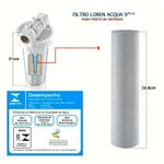 REFIL FILTRO POLIPROPILENO 9.3/4" LORENZETTIO Refil de Filtro de Polipropileno 9.3/4" da Lorenzetti é um cartucho essencial para a filtragem da água em diversos sistemas de purificação, como filtros de caixa d'água, ponto de entrada (POE) e alguns purificadores de água. Ele é a primeira barreira de proteção para a água, responsável por reter partículas sólidas.CARACTERÍSTICAS E ESPECIFICAÇÕESMaterial: Fabricado em polipropileno, um material seguro e atóxico, que proporciona uma filtração eficiente.Tamanho: Possui o tamanho padrão de 9.3/4 polegadas, o que o torna compatível com a maioria dos filtros de carcaça de 9 polegadas e 3/4 polegadas do mercado.Microfiltragem: Retém partículas de sujeira, como areia, barro, ferrugem, lodo e outros sedimentos suspensos na água, que podem danificar tubulações e eletrodomésticos.Vida Útil: A vida útil do refil é de aproximadamente 6 meses, mas pode variar dependendo da qualidade da água e do volume de uso. A troca é simples e não requer a presença de um técnico.Aplicações:Ponto de Entrada (POE): Instalado na entrada da água da residência para proteger toda a tubulação e caixas d'água.Filtros de Cozinha: Pode ser usado em filtros instalados na pia para remover sedimentos.Caixa d'Água: Usado em filtros que são instalados antes da caixa d'água para evitar o acúmulo de sujeira.PESO E MEDIDASPeso do Produto: O refil pesa aproximadamente 200g a 400g.Medidas (A x Diâmetro): As dimensões aproximadas do refil são:Altura: 25,7 cmDiâmetro: 7,5 cm