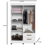 O Roupeiro Com Espelho Copacabana 4 Portas Possui 03 Prateleiras, 02 Cabideiros Em Aluminio, 02 Gavetas Com Corredicas Telescopicas E Puxadores Em Pvc. Proporcionando Beleza E Organizacao Para Seu Quarto.