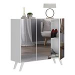 A Sapateira Retrô com Espelho 3 Portas Nina Multimóveis é produzida em MDP com acabamento acetinado (cerca de 20% de brilho), que garante maior durabilidade, facilidade na limpeza, além de um acabamento superior. Com 3 portas, possui um excelente espaço interno para acomodar seus sapatos e demais pertences (as prateleiras internas suportam 2 e 5 Kg e o tampo 7 Kg). Os pés retrô, em polipropileno, dão um charme especial ao móvel deixando-o com um visual leve e permitindo você compor um ambiente com ar vintage e moderno ao mesmo tempo. Os espelhos na porta deixam o móvel mais requintado, criando um ambiente moderno e charmoso. Os espelhos são de vidro (o que evita que a imagem fique distorcida) e lapidados, ou seja, passam por um processo para que as bordas não fiquem cortantes, o que garante maior segurança. Compacta, é uma excelente opção para otimizar seu ambiente, para que você possa aproveitá-lo da melhor maneira possível.