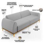 Com bastante originalidade e beleza ímpar o Sofá 03 Lugares Para Sala de Estar Kiev 210 cm D02 Linho Cinza D-315 - Lyam Decor vem para requintar ainda mais sua decoração! Amplamente sofisticado, é ideal se você está buscando por uma peça elegante e confortável. Possui acabamento impecável, é estruturado em madeira de eucalipto tratada, unidas com grampos galvanizados, base envernizada e pés de alumínio com pintura epóxi na cor New Bronze que o tornam ainda mais atraente e convidativo.