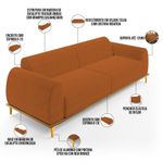 Com bastante originalidade e beleza ímpar o Sofá 03 Lugares Para Sala de Estar Kiev 210 cm D02 Veludo Telha C-262 - Lyam Decor vem para requintar ainda mais sua decoração! Amplamente sofisticado, é ideal se você está buscando por uma peça elegante e confortável. Possui acabamento impecável, é estruturado em madeira de eucalipto tratada, unidas com grampos galvanizados, base envernizada e pés de alumínio com pintura epóxi na cor New Bronze que o tornam ainda mais atraente e convidativo.