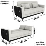 Sofa Cama 2 Lugares 203 Cm Boucle Corino Preto Milani Store NaturalDesign refinado, conforto absoluto e acabamento impecável: o Sofá-Cama Esther transforma qualquer ambiente! Estrutura em madeira de Eucalipto de reflorestamento, assentos com percintas elásticas e molas espirais, além de espumas D23 nos assentos e braças e D20 no encosto para mais maciez. O revestimento frontal é em tecido Boucle (macio, encorpado, com visual moderno e aconchegante), e as laterais e rodapé são em tecido Frankfurt Montana (material sintético tipo corino, com aparência suave e fácil de limpar). Possui sistema catraca com 3 posições: Sentado, Leitura e Descanso. Suporta até 110 kg por assento e acompanha 2 almofadas decorativas (55x35 cm). Os pés em madeira garantem estabilidade e completam o visual. Este móvel será entregue em sua casa separado em 01 volume.DimensõesMedidas Sentado: