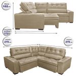 Sofa De Canto Retrátil E Reclinável Com Molas Cama Inbox Austin 2,70m X 2,70m Suede Velusoft Castor