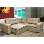 Sofa De Canto Retrátil E Reclinável Com Molas Cama Inbox Oklahoma 2,20m X 2,20m Suede Velusoft Bege